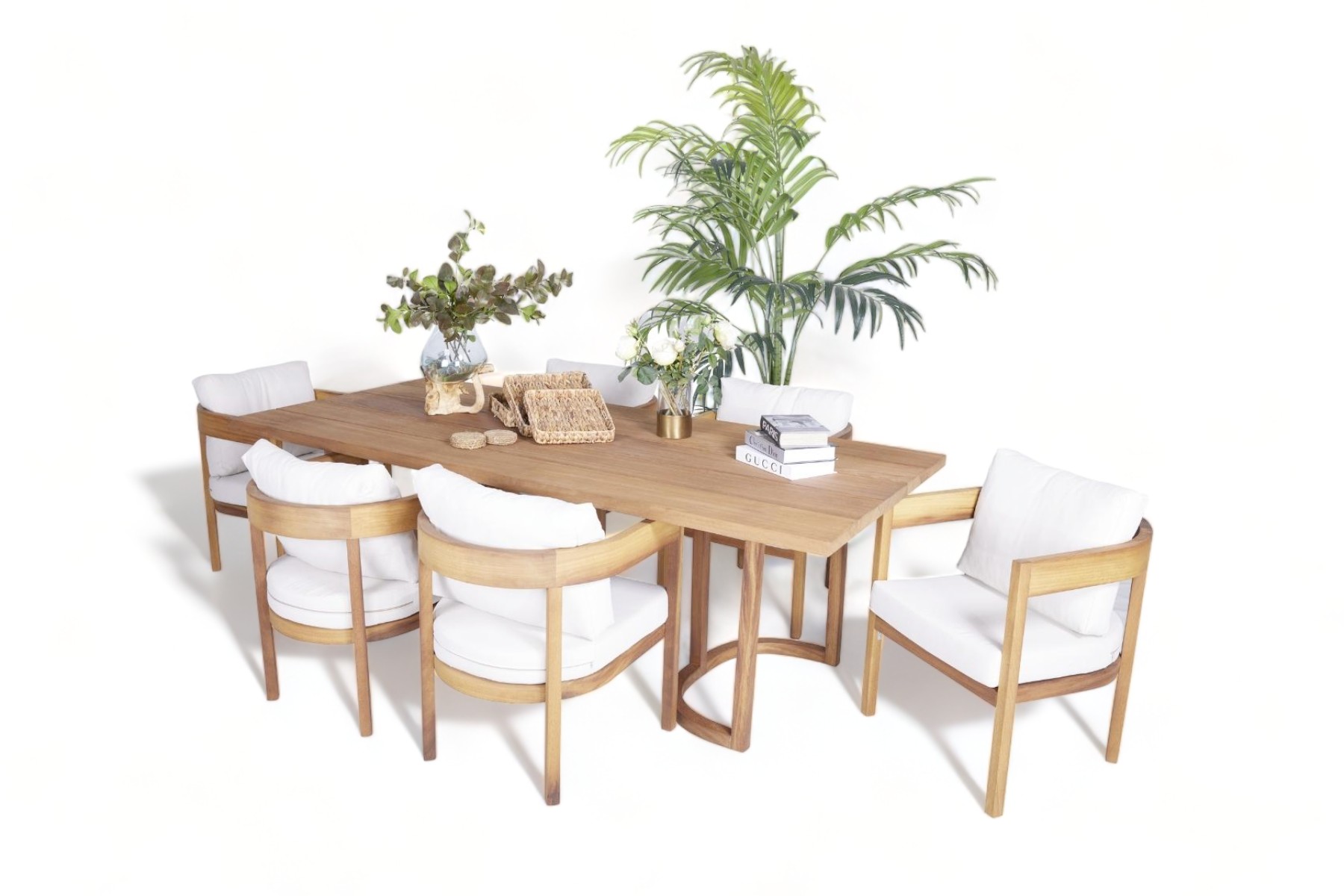 Bubble Masa Takımı, iç ve dış mekanlarınıza estetik bir dokunuş katarken, iroko ağacının doğal güzelliği ile dayanıklılığı birleştirir. Bu masa takımı, evinizi lüksle tanıştırarak özel anlarınızı daha değerli kılar.
