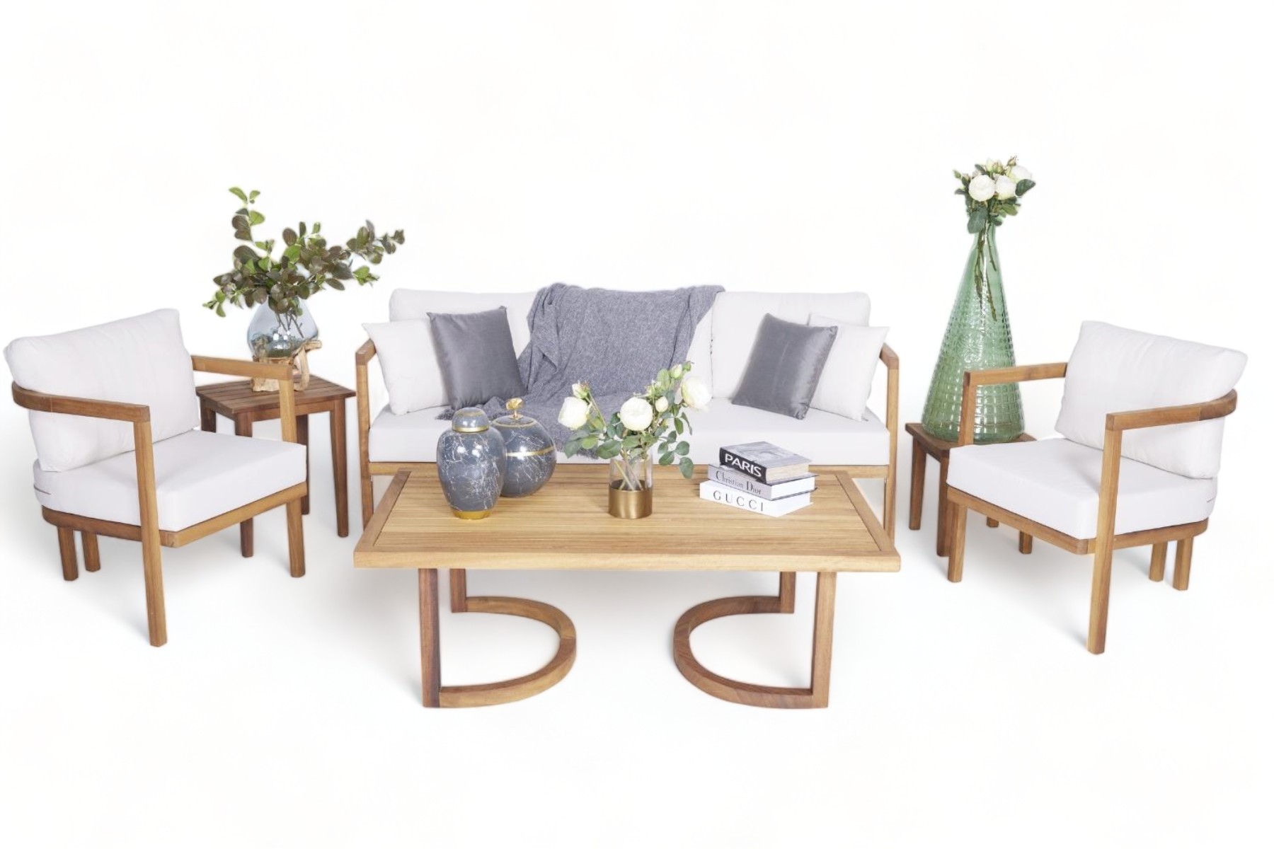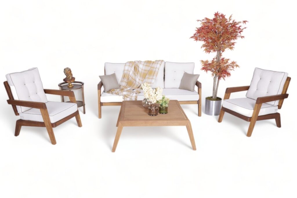 2. Estetik ve Zarafet: Grubun tasarımında modern çizgiler ve özgün detaylar bir araya gelir. Iroko ağacının doğal dokusu, estetik ve zarafeti birleştirerek yaşam alanınıza özel bir atmosfer katar.