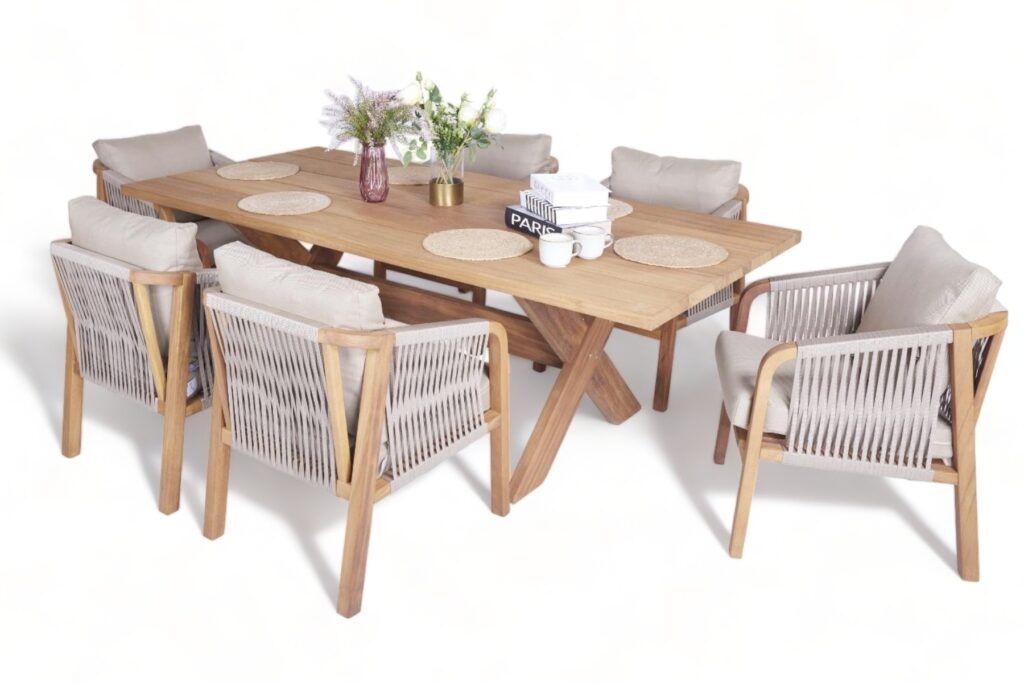Mira Masa Takımı, iç ve dış mekanlarınızı birleştirerek lüks bir atmosfer yaratmanıza olanak tanır. Estetik ve konforun bir araya geldiği bu şık masa takımı, evinizi özel ve davetkâr kılar.
