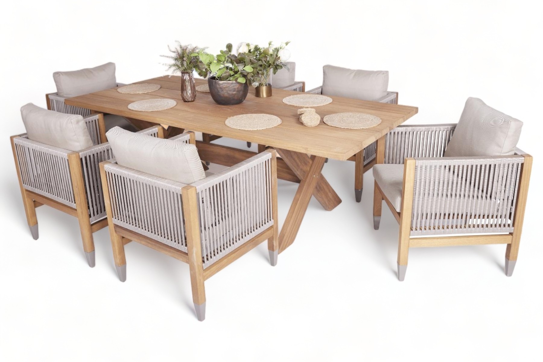 3. Doğal İroko Ağacı: Soho Masa Takımı, dayanıklılığı ile bilinen iroko ağacından üretilmiştir. Doğal rengi ve dokusu ile doğayla iç içe, uzun ömürlü kullanım için tasarlanmıştır.