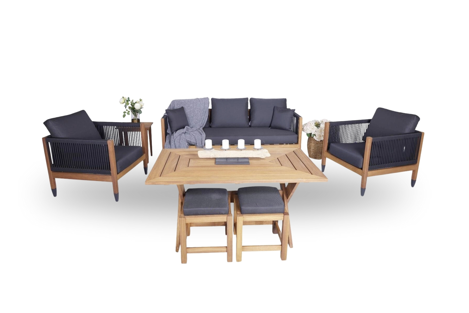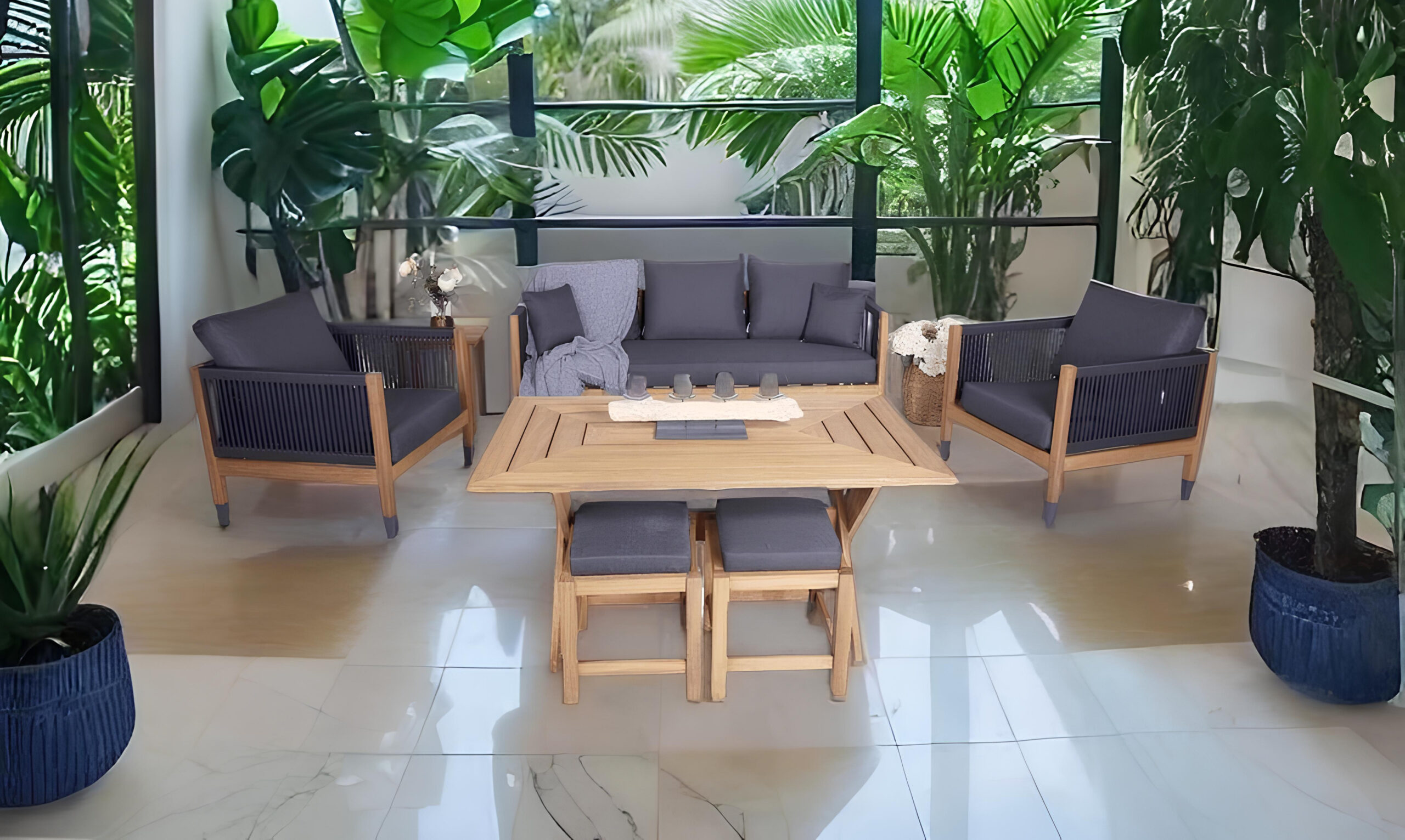 3. Doğal İroko Ağacı: SOHO Oturma Grubu, dayanıklılığı ile bilinen iroko ağacından üretilmiştir. Doğal rengi ve dokusu ile doğayla iç içe, uzun ömürlü kullanım için tasarlanmıştır.